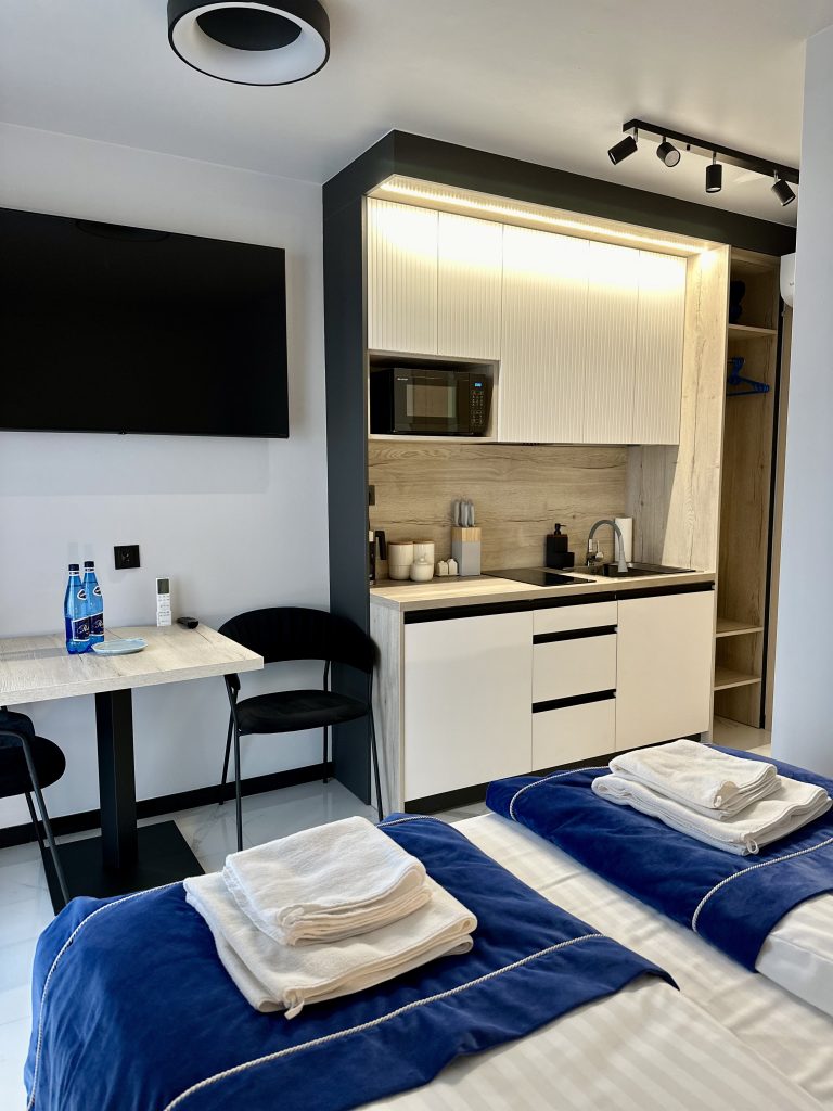 W Cobalt Apartments znajduje się 11 przestronnych studio. Każde z nich charakteryzuje się nowoczesnym stylem, wyjątkowym designem wzbogaconym przytulnymi marynarskimi akcentami. Wygodne łóżka, naturalne kosmetyki, prywatny balkon, czy taras, zaspokoją potrzeby rodzin czy grupy przyjaciół. Takie otoczenie wprawi Was w dobry nastrój po dniu spędzonym na plaży, rejsie łodzią albo pieszej wędrówce.